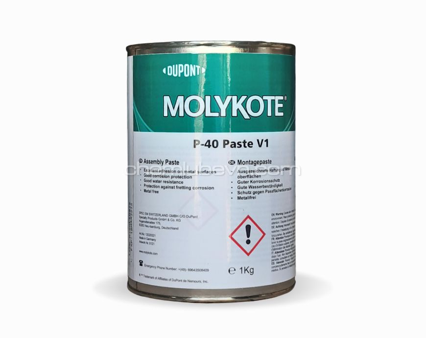 Molykote P-40 Paste V1 là chất bôi trơn không chứa kim loại, có thể được sử dụng cho tất cả các công việc lắp ráp và bôi trơn liên tục, đặc biệt là những công việc tiếp xúc với môi trường ăn mòn như nước bắn hoặc độ ẩm.