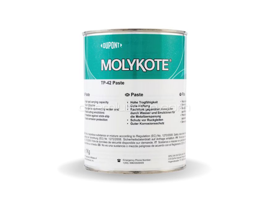 MOLYKOTE TP-42 là mỡ paste bôi trơn màu trắng với chất bôi trơn rắn cho các cặp tiếp xúc kim loại với kim loại. Được sử dụng chủ yếu cho mâm cặp